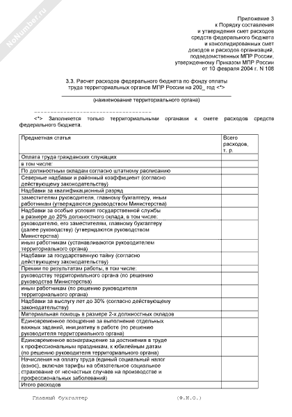 Формы-расшифровки к сметам доходов и расходов организаций, подведомственных Министерству природных ресурсов Российской Федерации. Расчет расходов федерального бюджета по фонду оплаты труда территориальных органов министерства природных ресурсов России на год (рекомендуемый образец заполнения)