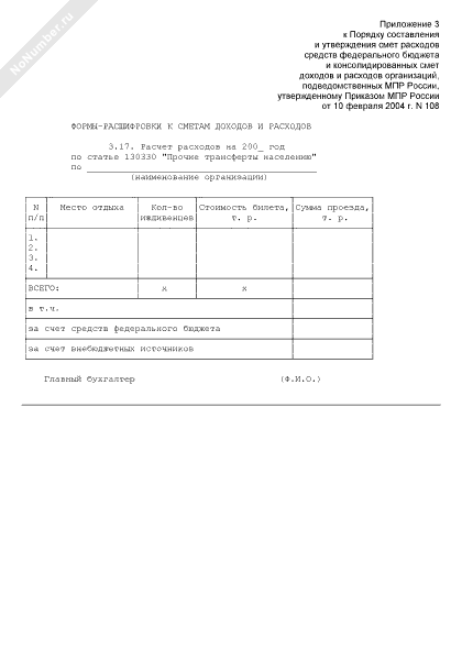 Формы-расшифровки к сметам доходов и расходов организаций, подведомственных Министерству природных ресурсов Российской Федерации. Расчет расходов по статье 130330 «Прочие трансферты населению» (рекомендуемый образец заполнения)