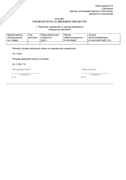 Расчет арендной платы за движимое имущество (приложение к договору аренды для имущественного комплекса, движимого имущества, находящегося в муниципальной собственности г. Коломны Московской области)
