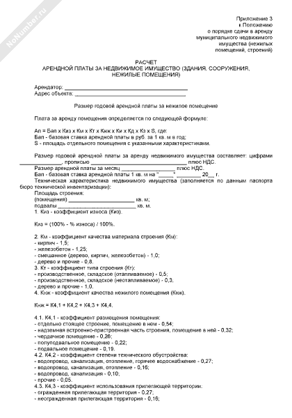 Расчет арендной платы за недвижимое имущество (здания, сооружения, нежилые помещения) городского поселения Волоколамск Волоколамского района Московской области