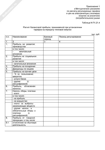 Расчет балансовой прибыли, принимаемой при установлении тарифов на передачу тепловой энергии (таблица № П1.21.4)