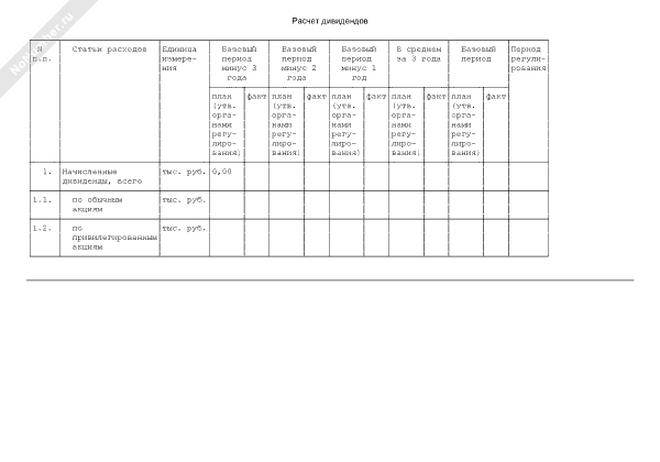 Расчет дивидендов (форма № 27)