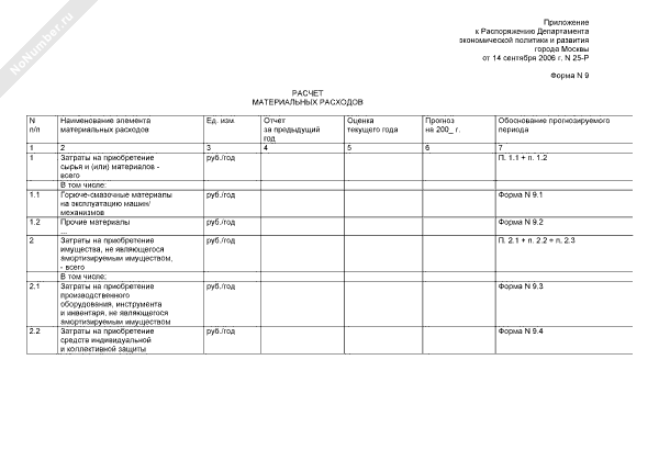 Расчет материальных расходов (форма № 9)