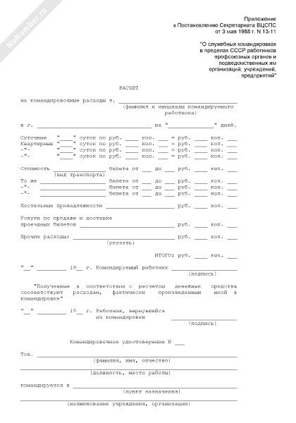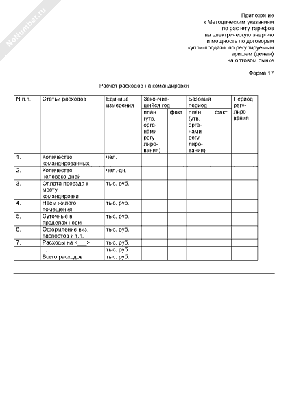 Расчет расходов на командировки (форма № 17)