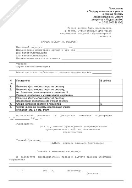 Расчет налога на рекламу в г. Подольске Московской области