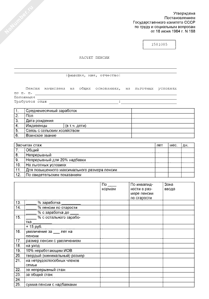 Расчет пенсии. Форма № 1501005