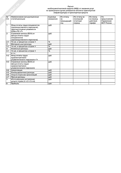 Расчет необходимой валовой выручки (НВВ) от оказания услуг по проведению оценки уязвимости объектов транспортной инфраструктуры и транспортных средств