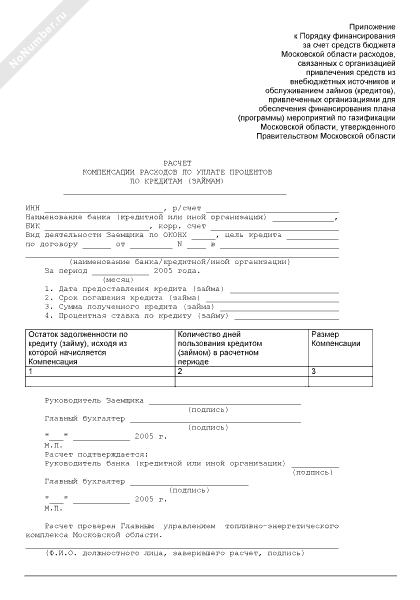 Расчет компенсации расходов по уплате процентов по кредитам (займам)