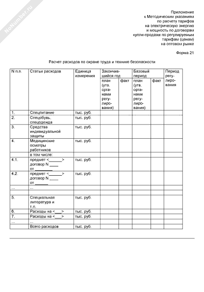 Расчет расходов по охране труда и технике безопасности (форма № 21)