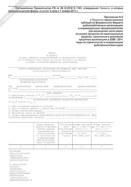 - Источник– Постановление Правительства РФ от 29.12.2010 № 1181