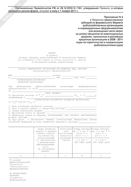 - Источник– Постановление Правительства РФ от 29.12.2010 № 1181