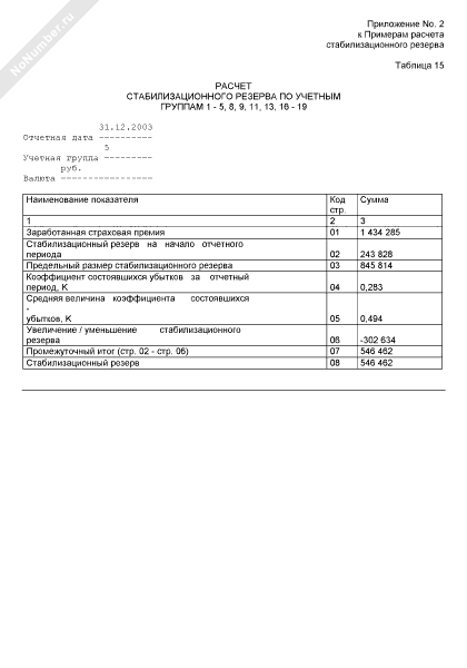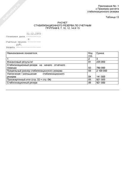 Расчет стабилизационного резерва по учетным группам 1 — 5, 8, 9, 11, 13, 16 — 19