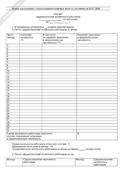 Расчет среднесписочной численности работников (рекомендуемый образец заполнения)