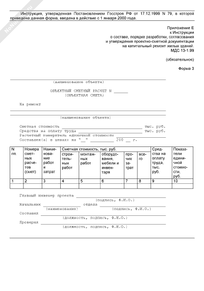 Объектный сметный расчет на строительство (форма № 3)