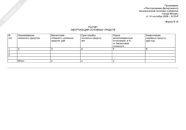 Расчет амортизации основных средств (форма № 10)