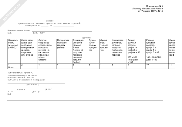 Расчет причитающихся целевых средств, полученных группой заемщиков