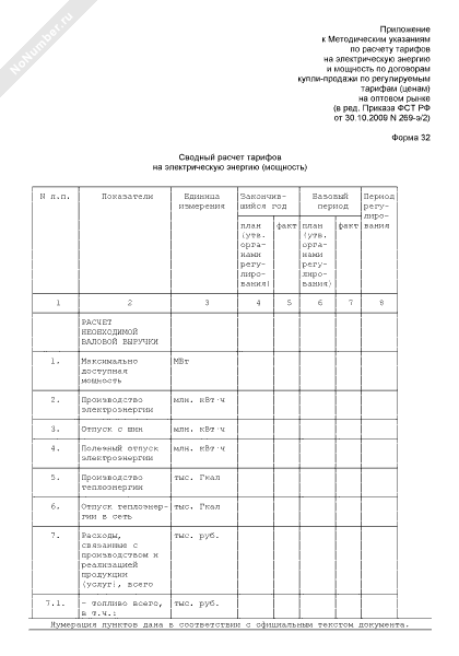 Сводный расчет тарифов на электрическую энергию (мощность). Форма № 32