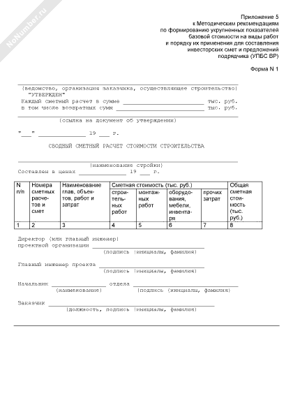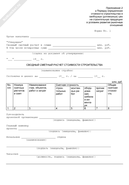 Сводный сметный расчет стоимости строительства (форма № 1)