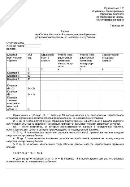 Таблицы для расчета страховых резервов по страхованию иному, чем страхование жизни. Расчет заработанной страховой премии для целей расчета резерва произошедших, но не заявленных убытков (рекомендуемый образец заполнения)