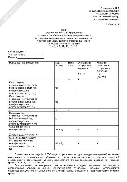 Таблицы для расчета страховых резервов по страхованию иному, чем страхование жизни. Расчет средней величины коэффициента состоявшихся убытков и оценки квадратического отклонения значений коэффициента состоявшихся убытков для целей расчета стабилизационного резерва по учетным группам 1-5, 8, 9, 11, 13, 16-19 (рекомендуемый образец заполнения)