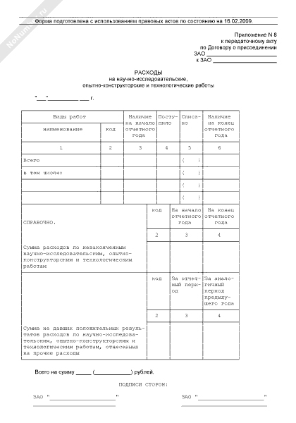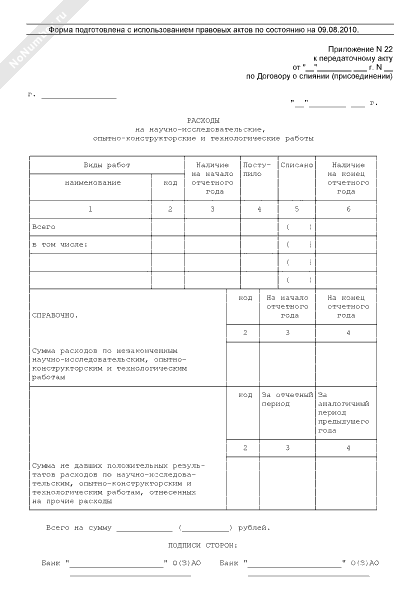 - 22Расходы на научно-исследовательские, опытно-конструкторские и технологические работы (приложение к передаточному акту по договору о присоединении закрытого акционерного общества к закрытому акционерному обществу)