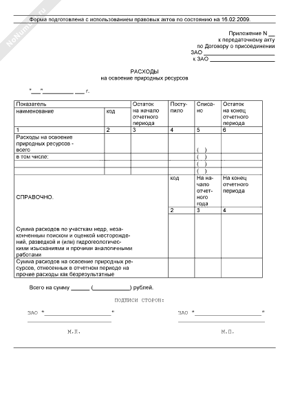 - 33Расходы на освоение природных ресурсов (приложение к передаточному акту по договору о присоединении закрытого акционерного общества к закрытому акционерному обществу)