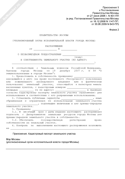 - 69Распоряжение о безвозмездном предоставлении в собственность гражданину, находящийся у него (на праве постоянного (бессрочного) пользования или пожизненно наследуемого владения или в фактическом пользовании) земельный участок, относящийся к категории земель поселений (форма № 2)