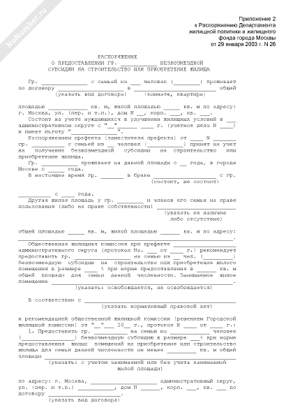 - 62Распоряжение о предоставлении гражданину безвозмездной субсидии на строительство или приобретение жилища