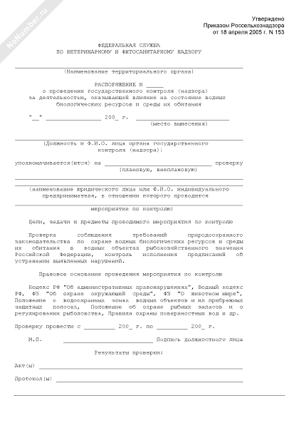 - 72Распоряжение о проведении государственного контроля (надзора) за деятельностью, оказывающей влияние на состояние водных биологических ресурсов и среды их обитания