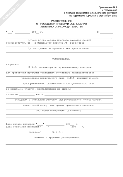 - 74Распоряжение о проведении проверки соблюдения земельного законодательства на территории городского округа Протвино Московской области