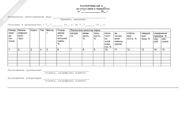 Распоряжение на отпуск зерна в переработку. Отраслевая форма № ЗПП-109