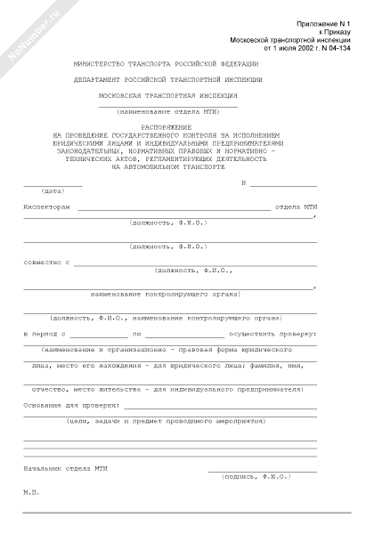 - Источник– Приказ Московской транспортной инспекции от 01.07.2002 № 04-134
