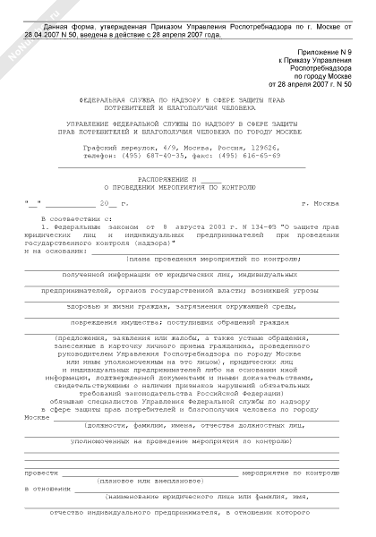 - Источник– Приказ Управления Роспотребнадзора по г. Москве от 28.04.2007 № 50