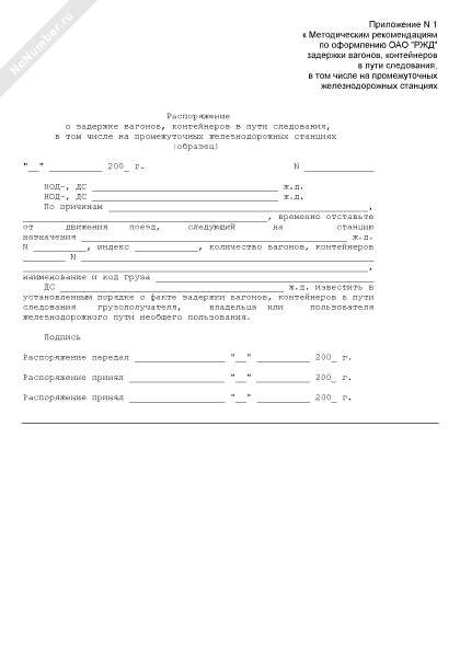Распоряжение о задержке вагонов, контейнеров в пути следования, в том числе на промежуточных железнодорожных станциях (рекомендуемый образец заполнения)