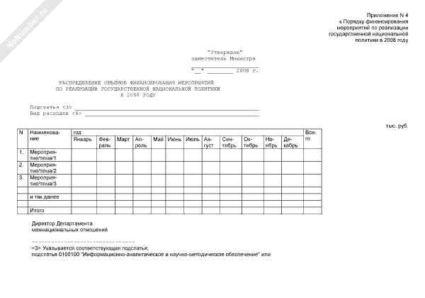 Распределение объемов финансирования мероприятий по реализации государственной национальной политики в 2008 году (рекомендуемый образец заполнения)