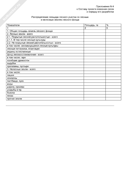 Распределение площади лесного участка по лесным и нелесным землям лесного фонда (рекомендуемый образец заполнения)