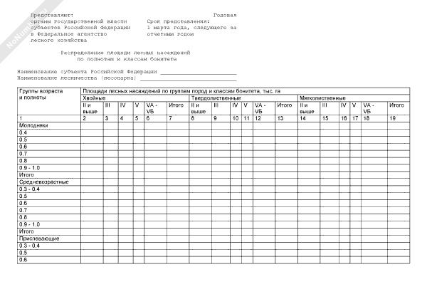 Распределение площади лесных насаждений по полнотам и классам бонитета (информация для представления в Федеральное агентство лесного хозяйства, занесенная в государственный лесной реестр)