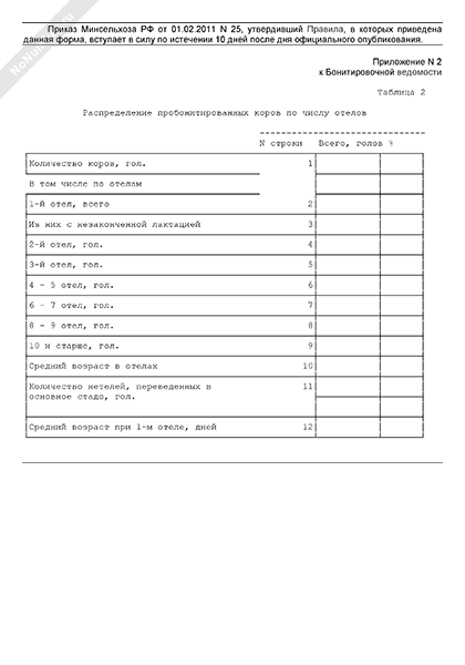 - Источник– Приказ Минсельхоза РФ от 01.02.2011 № 25