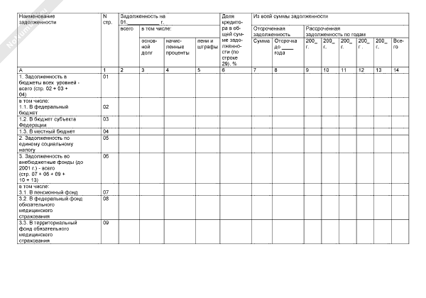 Распределение сложившейся задолженности сельскохозяйственной организации (рекомендуемый образец заполнения)