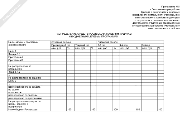 Распределение средств Рослесхоза по целям, задачам и бюджетным целевым программам (рекомендуемый образец заполнения)
