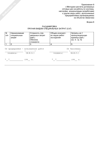 Расшифровка прочих видов специальных затрат (С47) (форма № 6)