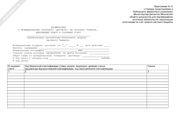 Расшифровка к муниципальному контракту (договору) на поставку товаров, выполнение работ и оказание услуг организацией в Люберецком муниципальном районе Московской области