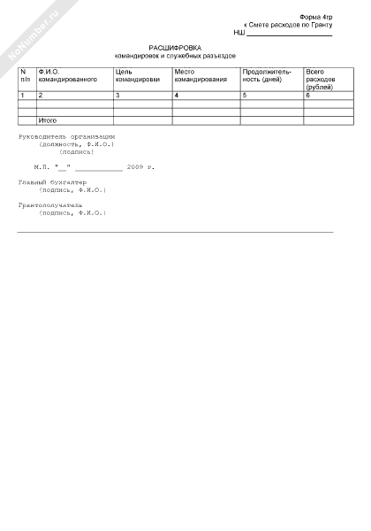 Расшифровка командировок и служебных разъездов (приложение к смете расходов на выполнение научно-исследовательской работы в рамках государственной поддержки ведущих научных школ Российской Федерации)