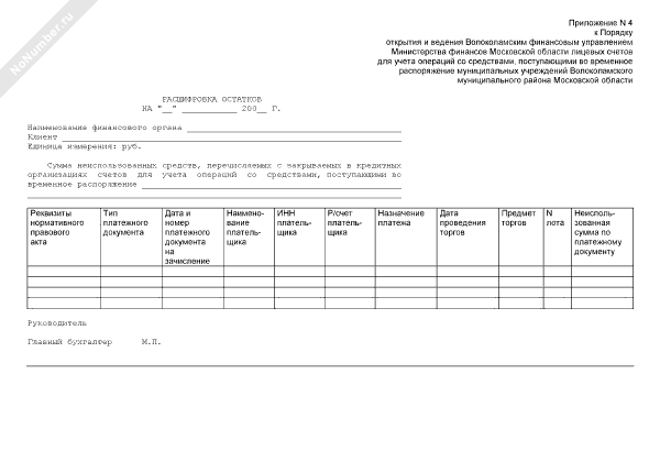 Расшифровка остатков (предоставляется клиентом Волоколамскому финансовому управлению Министерства финансов Московской области)