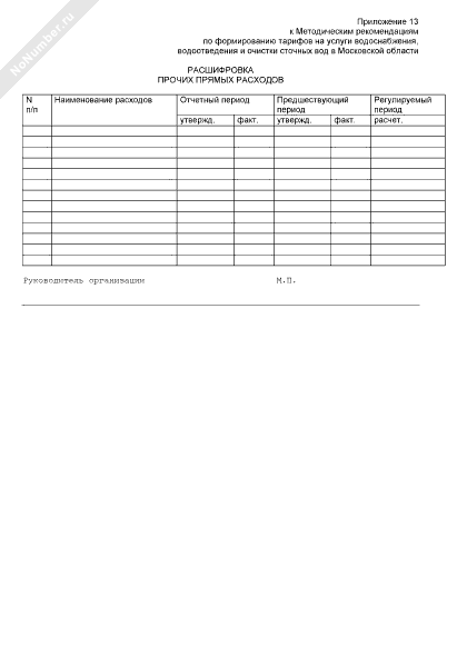 Расшифровка прочих прямых расходов на водоснабжение, водоотведение и очистку сточных вод в Московской области (рекомендуемый образец заполнения)