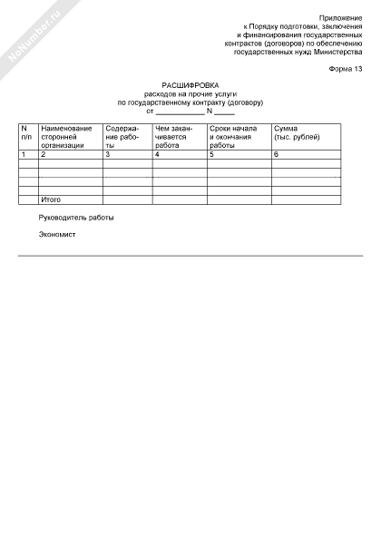 Расшифровка расходов на прочие услуги по государственному контракту (договору) по обеспечению государственных нужд Минобрнауки РФ (форма № 13)