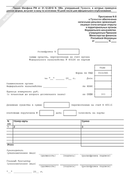 - Источник– Приказ Минфина РФ от 31.12.2010 № 199н