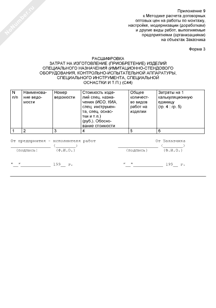 Расшифровка затрат на изготовление (приобретение) изделий специального назначения (имитационно-стендового оборудования, контрольно-испытательной аппаратуры, специального инструмента, специальной оснастки и т.п.) (С44) (форма № 3)
