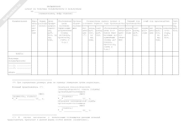Расшифровка затрат на покупные полуфабрикаты к калькуляции (для продукции с длительным технологическим циклом производства)