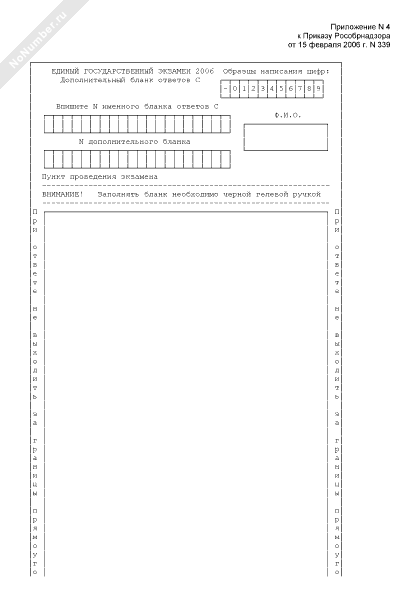 - 186Дополнительный бланк ответов «С» участника единого государственного экзамена